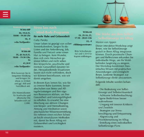 >vhs-Treffpunkt< mentale Gesundheit darunter lei- Der Workshop kombiniert theo-