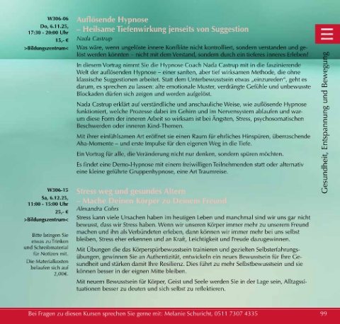 Bei Fragen zu diesen Kursen sprechen Sie gerne mit: Melanie Schuricht, 0511 7307 4335 99