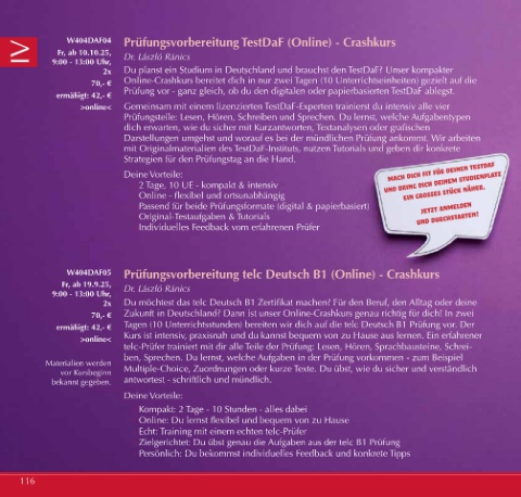 >online< Gemeinsam mit einem lizenzierten TestDaF-Experten trainierst du intensiv alle vier