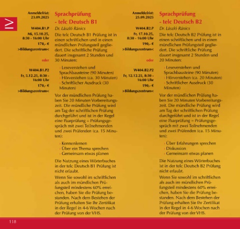 Mi, 15.10.25, Die telc Deutsch B1 Prüfung ist in Fr, 17.10.25, Die telc Deutsch B2 Prüfung ist in