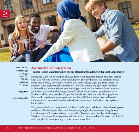 donnerstags: - Runder Tisch in Zusammenarbeit mit der Integrationsbeauftragten der Stadt Langenhagen