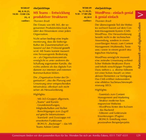Mi, 8.10.25, MS Teams – Entwicklung Sa, 11.10.25, WordPress - einfach genial