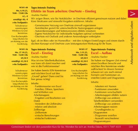 Gemeinsam finden wir den passenden Kurs für Sie. Wenden Sie sich an: Annika Eskera, 0511 7307 4331 133