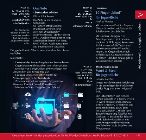 Gemeinsam finden wir den passenden Kurs für Sie. Wenden Sie sich an: Annika Eskera, 0511 7307 4331 135