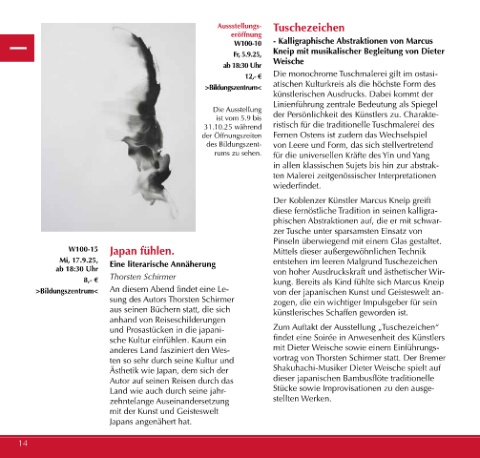 >Bildungszentrum< An diesem Abend findet eine Le- von der japanischen Kunst und Geisteswelt an-