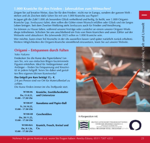 stehen und als Zeichen dafür falten Sie mit uns 1.000 Kraniche aus Papier! I