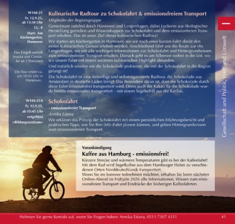 diese Fahrt emissionsfrei transportiert wird. Denn auch der Kakao für die Schokolade wur- Gesellschaft und Politik, Welt und Umwelt