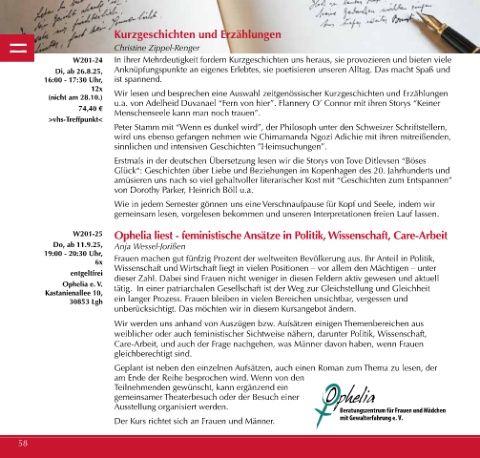 W201-25 Ophelia liest - feministische Ansätze in Politik, Wissenschaft, Care-Arbeit