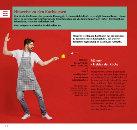 ermäßigt: 63,- € am Kochen. Kochneulinge können