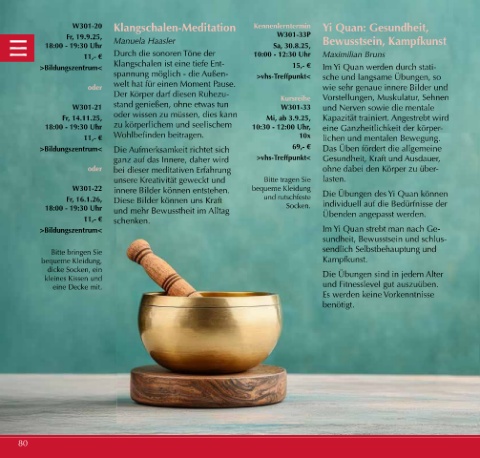 W301-20 Klangschalen-Meditation Kennenlerntermin Yi Quan: Gesundheit,