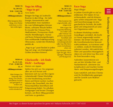 Bei Fragen zu diesen Kursen sprechen Sie gerne mit: Melanie Schuricht, 0511 7307 4335 83