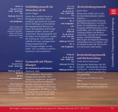 Bei Fragen zu diesen Kursen sprechen Sie gerne mit: Melanie Schuricht, 0511 7307 4335 93