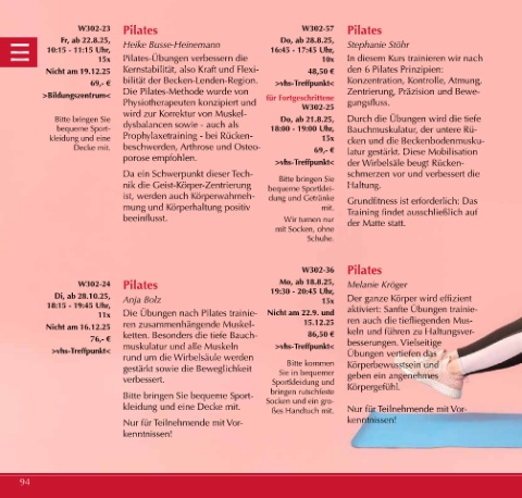 69,- € bilität der Becken-Lenden-Region. >vhs-Treffpunkt< Konzentration, Kontrolle, Atmung,