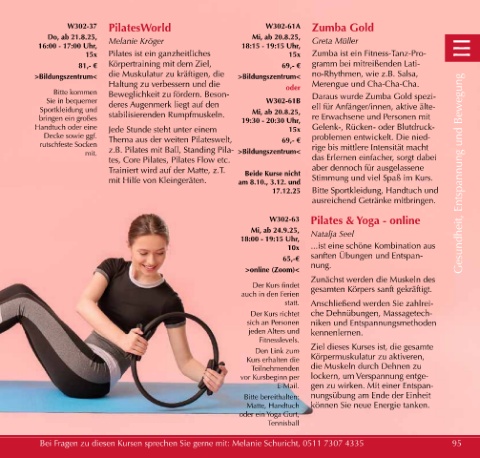 Bei Fragen zu diesen Kursen sprechen Sie gerne mit: Melanie Schuricht, 0511 7307 4335 95